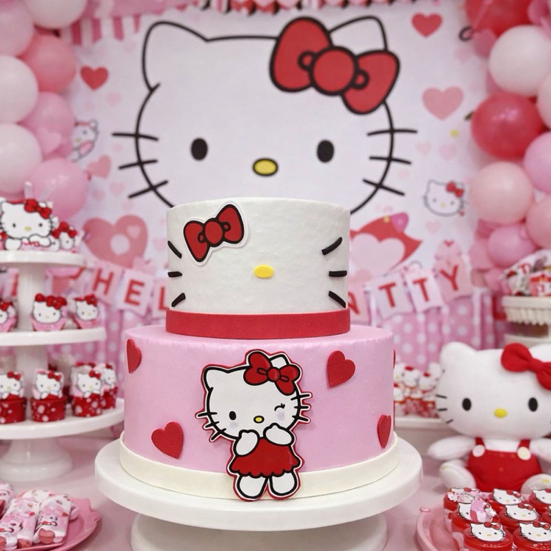 Bolo Fake Hello Kitty – 2 Andares 🎀 Encante a decoração da sua festa com este lindo bolo fake da Hello Kitty! Com dois andares ricamente decorados, ele traz cores suaves, detalhes delicados e a personagem mais querida da Sanrio em destaque. Produzido com materiais de alta qualidade, é perfeito para compor mesas de aniversário, ensaios fotográficos e festas temáticas, garantindo um visual encantador sem preocupação com conservação. Um item que transforma a decoração e conquista crianças e adultos!