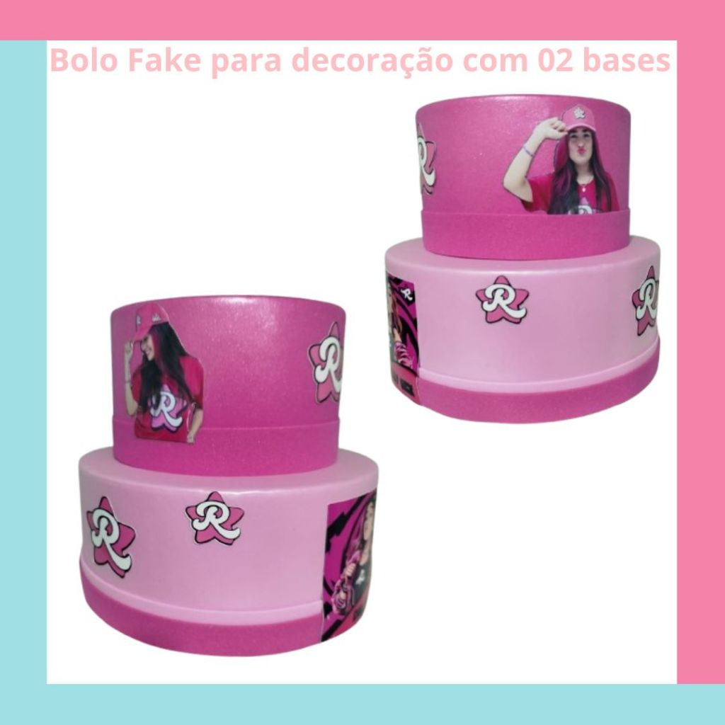 Bolo Fake Youtuber Emilly Vick - 02 andares - bolo cenográfico Em isopor 1 base oca e 1 base maciça Base P com 17 cm de diâmetros - maciça Base M com 23 cm de diâmetros - oca. Total de altura 20 cm