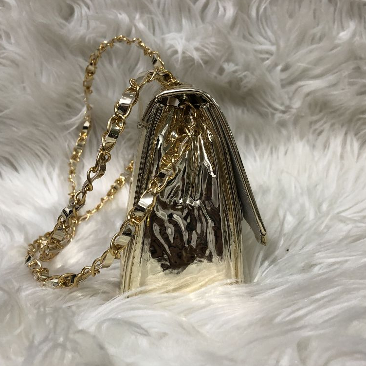 Bolsa Bag Metalizada De Festa Com Corrente Transpassada e Ziper ( Cabe Celular)