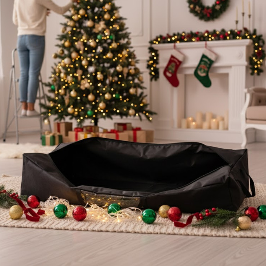 Bolsa Organizadora para Árvore de Natal Tamanho M Guarde sua árvore de Natal com praticidade, proteção e estilo! A bolsa organizadora foi desenvolvida para armazenar árvores e enfeites natalinos de forma segura, compacta e higiênica, mantendo tudo protegido da poeira, umidade e danos durante o ano todo. ✨ Destaques do Produto: - Material resistente: confeccionada em tecido poliéster de alta durabilidade, fácil de limpar e resistente ao rasgo. - Zíper reforçado no topo: abertura total e prática para guardar e retirar a árvore com facilidade - Alças firmes: facilitam o transporte, mesmo com a bolsa cheia. - Janela transparente lateral: permite visualizar o conteúdo interno sem precisar abrir. - Design retangular achatado: ideal para armazenar embaixo da cama, em prateleiras ou closets. - Acabamento reforçado nas costuras para maior resistência e durabilidade. Medidas disponíveis: (escolha o tamanho conforme a altura e o volume da sua árvore de Natal) Ideal para: Armazenar árvores de Natal desmontadas, galhos, luzes e enfeites. Manter a organização da decoração natalina após as festas. Evitar mofo, sujeira e danos nas peças. - Dicas de Conservação: Limpe com pano úmido e sabão neutro. Guarde em local seco e ventilado. Evite objetos cortantes no interior da bolsa. Benefícios: Mantém sua árvore protegida o ano inteiro. Facilita a organização pós-festas. Produto durável, prático e com ótimo custo-benefício.