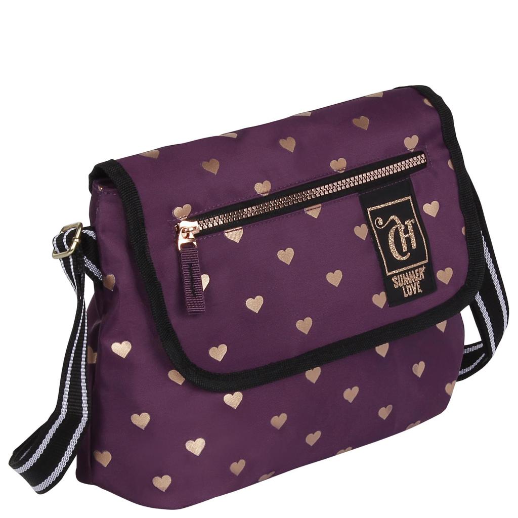 O seu próximo desejo A linha Capricho Wishes consegue, como poucas, ser clássica e contemporânea ao mesmo tempo. Os produtos são feitos em nylon, nas cores roxo e preto, mas não são nada sisudos. Os detalhes de coraçõezinhos dourados deixam o visual mais jovem e moderno. A bolsa é a versão mais compacta da linha e vem cheia de praticidades, como o bolso de acesso rápido na tampa superior e bolso escondido nas costas. A alça transversal ainda é ajustável ao seu tamanho.