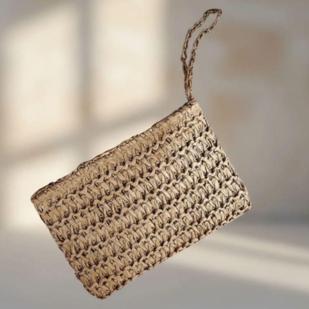 Bolsa Clutch Bolsinha Mão Palha Alça Porta Celular Níquel