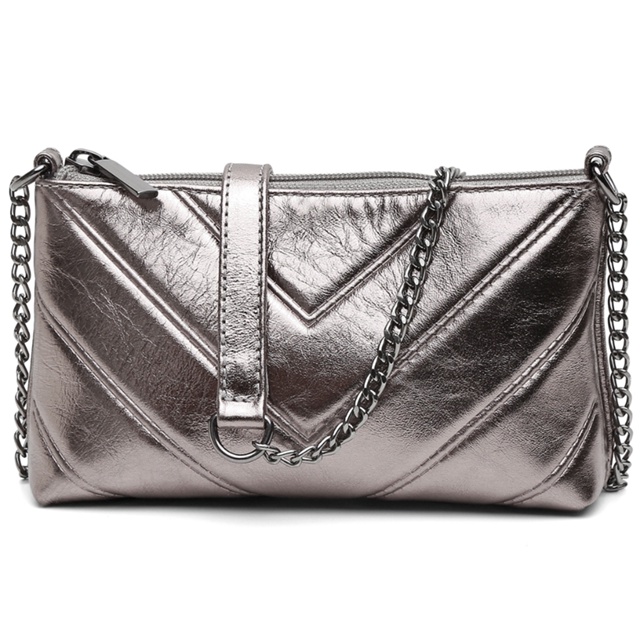 Seja Bem-vindo a Loja da Vittal Calçados na Shopee. ------------------------------------------------------------------------------------------ Bolsa Ísis em couro legítimo Vittal. Uma peça sofisticada e cheia de personalida para compor looks femininos modernos e elegantes. Com acabamento metálico prateado, seu design apresenta costuras em padrão geométrico, criando um visual contemporâneo e refinado. A alça de corrente destacável oferece versatilidade, permitindo o uso tanto como bolsa de ombro quanto clutch. Seu fechamento por zíper garante segurança e praticidade no dia a dia. Compacta e funcional, é ideal para complementar produções de moda feminina em eventos noturnos, festas ou até para elevar um look casual com um toque de brilho e estilo. Descrição Técnica Material: Couro legítimo Dimensões: 20cm (largura) x 11cm (altura) x 6cm (profundidade) Alça: 110cm Fechamento: Zíper superior ------------------------------------------------------------------------------------------ Dúvidas Frequentes 1 - Como Calcular seu Frete? R. Basta inserir seu CEP para o cálculo no campo frete e a Shopee lhe informará as melhores opções de envio e seus respectivos preços. Ainda tem dúvidas? -Utilize o campo de perguntas em caso de dúvidas e somente clique em comprar após ter plena certeza em honrar a compra e concordar com as condições descritas acima. ------------------------------------------------------------------------------------------ - ATENÇÃO PARA OS DADOS DE ENTREGA: - Confira o seu endereço de entrega cadastrado, não alteramos endereços após a compra. - HORÁRIO DE ATENDIMENTO: Segunda a Sexta 08:00 às 17:00hrs