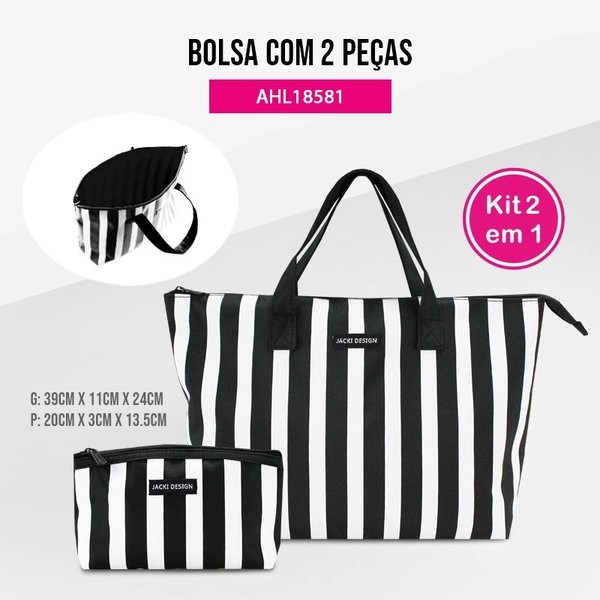 Bolsa Transparente 2 peças . Ideal para ser usada na praia, piscina ou cidade, a bolsa da nova coleção da Jacki Design é um item super versátil. Seu modelo maior e transparente comporta diversos produtos e permite visualizá-los com facilidade. Seu material impermeável também facilita na limpeza. CUIDADOS GERAIS: Limpe a bolsa com um pano úmido. Caso necessário, use sabão neutro ou álcool para higienizar o local. Deixe secar na sombra. ATENÇÃO: Para preservar a vida útil do produto, recomendamos não deixar a bolsa de molho, não levar a máquina de lavar e também não utilizar produtos químicos. Bolsa G: 49x13x29 Bolsa P: 41x10x23 Material: PVC + Poliester POR QUE VOCÊ NÃO PODE DEIXAR DE COMPRAR NOSSO PRODUTO? Adquirindo diretamente conosco, você vai ter a certeza de estar comprando um produto original da marca Jacki Design. E isso é muito importante, para não se frustrar caso adquira um produto falsificado ou de péssima qualidade. Os produtos são de ótima qualidade, e com detalhes pensando em facilitar e organizar o seu dia-a-dia. Embalamos com todo cuidado e enviamos rapidamente pra você! E estaremos sempre a disposição para te atender da melhor forma possível. 3 meses de garantia