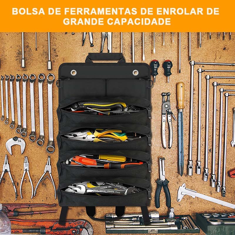 Bolsa de Ferramentas Rolo Nylon Impermeável 360° Rolável com 6 Divisões para Mecânicos Eletricistas Marcenaria
