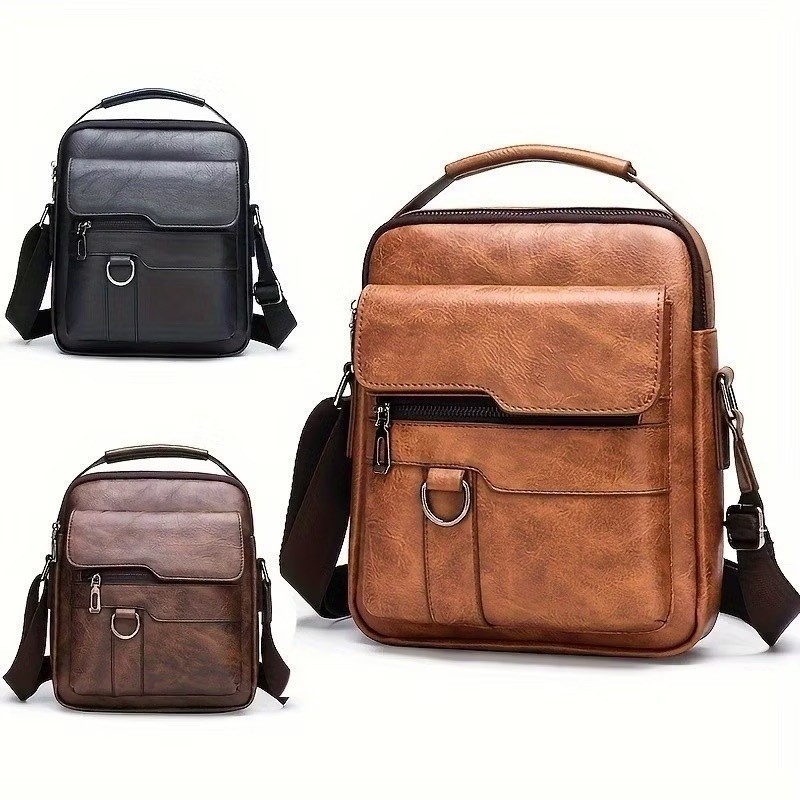 Bolsa de ombro masculina, pequena bolsa tiracolo retrô | Bolsa de couro PU,com alças ajustáveis Codigo:PY-40