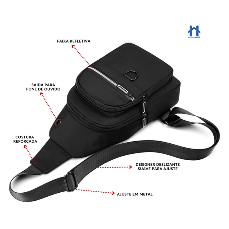 Bolsa de Ombro Transversal Masculina Mochila Impermeável Esportiva e Casual