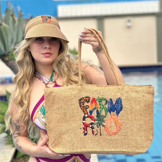 Bolsa de praia de palha com vieseira com ajuste de elastico kit com 2 peças verão