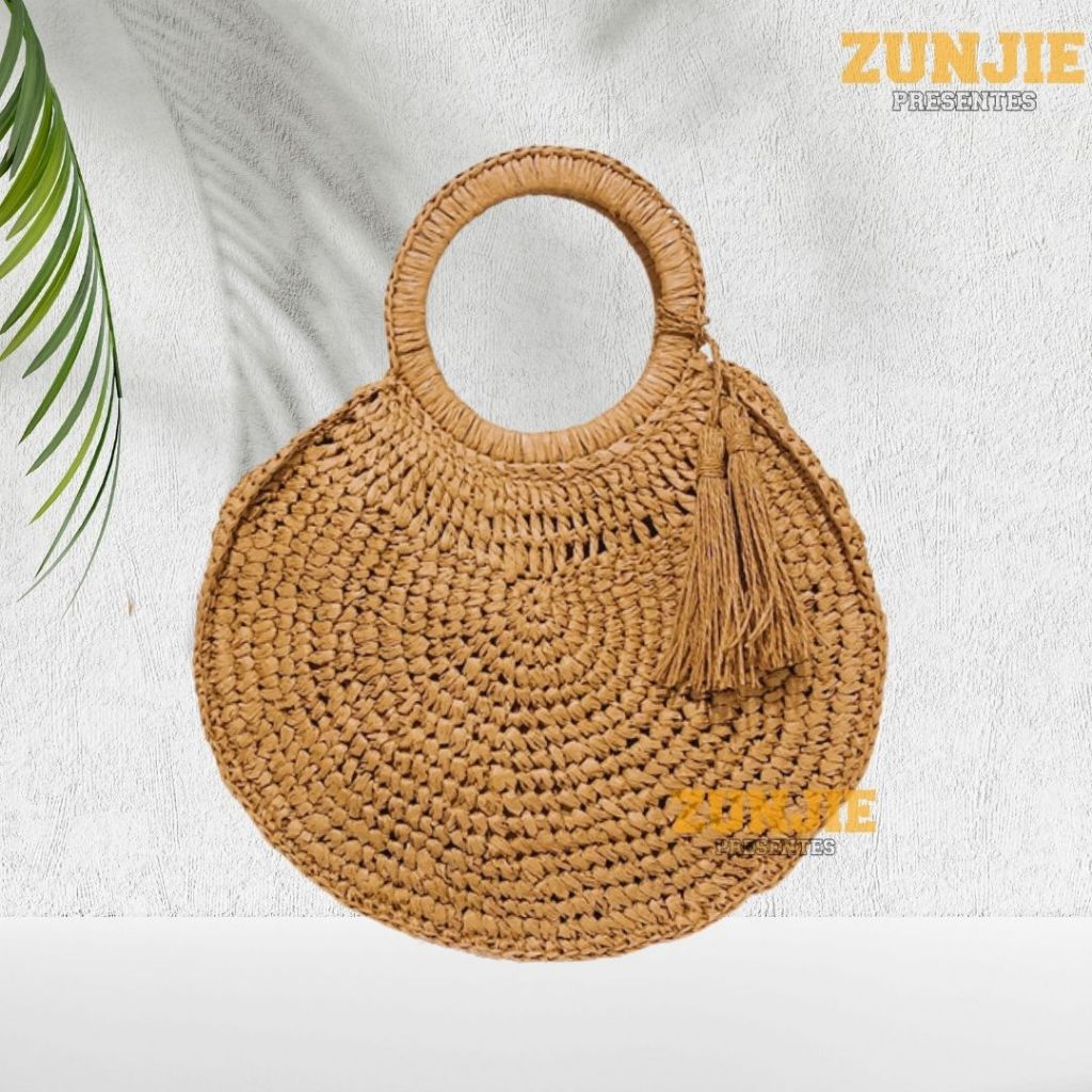 SEJA BEM VINDO A ZUNJIE PRESENTES DESCRIÇÃO Bolsa de praia com formato redondo, ideal para quem busca um acessório estiloso e diferenciado para os dias de verão. Feita com materiais leves e resistentes, seu design moderno e o formato circular trazem um toque de originalidade. O destaque fica por conta do enfeite na alça, que adiciona charme e sofisticação ao modelo, garantindo conforto ao carregar. Espaçosa o suficiente para seus itens essenciais, essa bolsa é perfeita para quem deseja unir praticidade e estilo em um único acessório. envio rápido em até 24 horas.