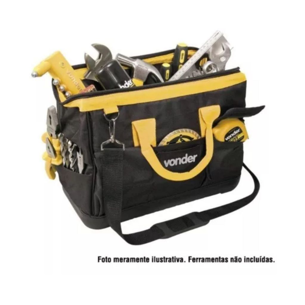 Indicada para acondicionamento de ferramentas e acessorios em geral. Confeccionada em lona reforcada com alcas em nylon, abertura total, reforco metalico na parte superior, alca fixa e alca auxiliar para transporte, fundo plastico reforcado a prova d'agua, ziper extra reforcado e 16 divisoes, sendo 6 na parte interna e 10 na parte externa. Conteudo da Embalagem: 1 Bolsa. Detalhes Tecnicos: Modelo:BL 070 Comprimento:40,0 cm Largura:20,0 cm Altura:25,0 cm Material:Lona Capacidade maxima de carga (kgf):12,0 kgf Massa aproximada (peso):1,088 kg