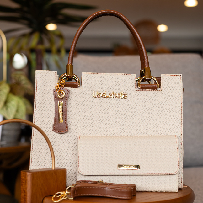 Bolsa Feminina Alça de Mão e Transversal Grande Resistente Elegante Detalhes em Metal Promoção