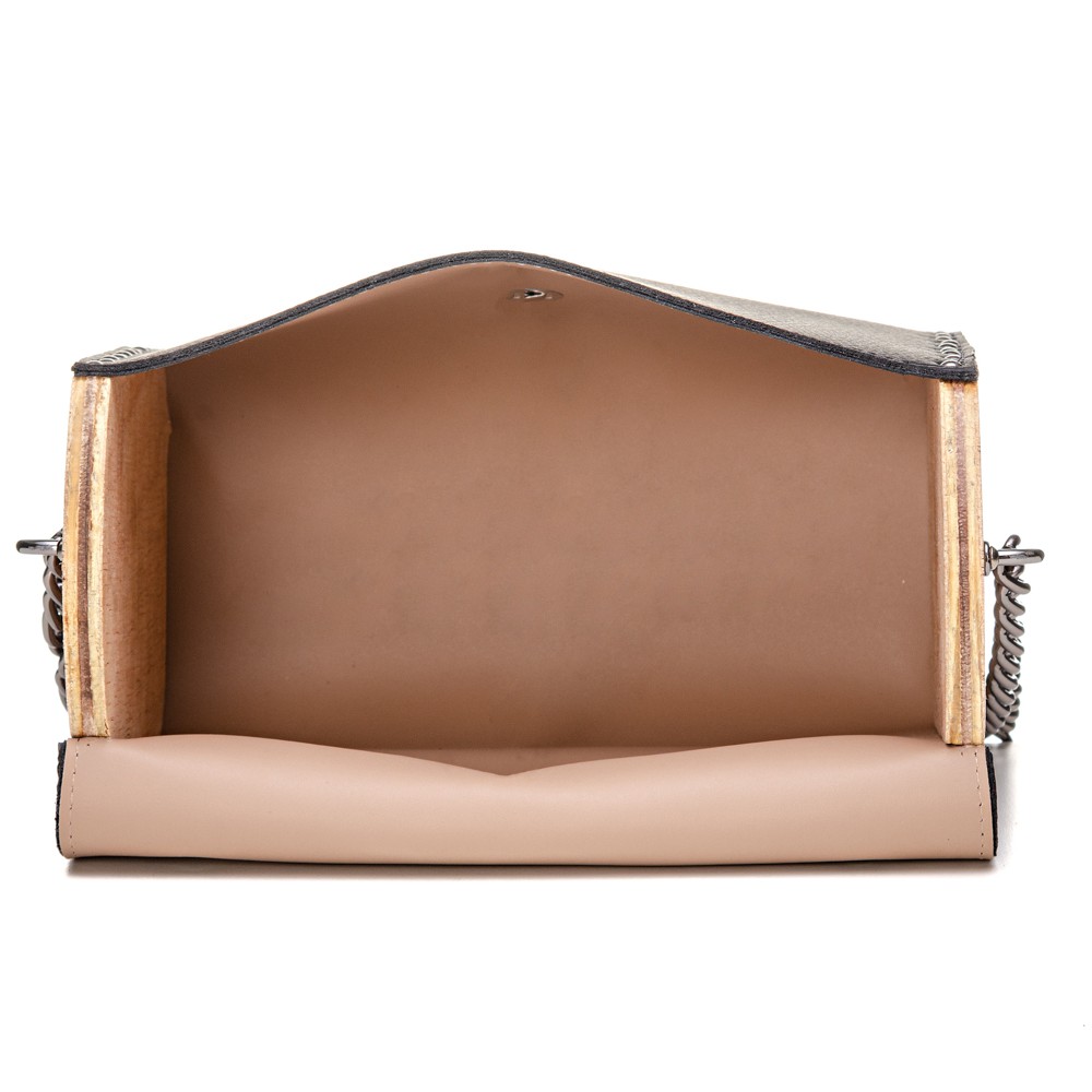 Bolsa Feminina Alça de Mão/Tiracolo Laterais de Madeira Dhaffy