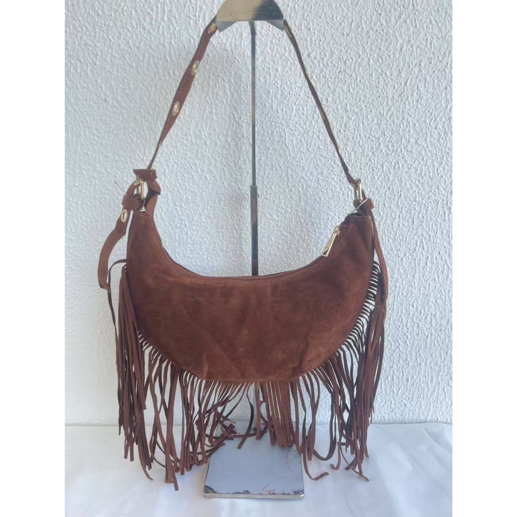 Bolsa feminina, bolsa de ombro, camurça com borlas meia-lua Comprimento31CM , largura5CM, altura14CM alça ajustável