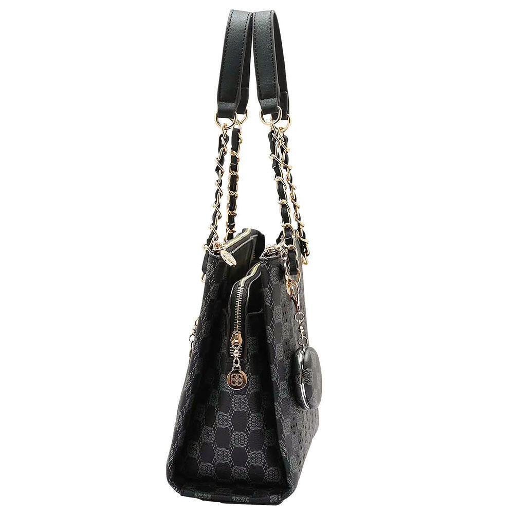 A bolsa feminina CHENSON CG85023 é a escolha perfeita para mulheres que buscam um acessório prático e estiloso. Fabricada com materiais de alta qualidade, a bolsa possui um design moderno e versátil, ideal para ser usada em diversas ocasiões. Seu amplo espaço interno permite que você carregue todos os seus pertences de forma organizada e segura. Além disso, seu acabamento é impecável, garantindo durabilidade e resistência. Com a bolsa CHENSON CG85023, você estará sempre na moda e pronta para enfrentar o dia a dia com muito estilo.. MODELO: 1825023 REFERENCIA: CG85023 MARCA: Chenson MATERIAL INTERNO: 100 % Poliéster ACABAMENTO: Colado/Costurado DETALHES: Abertura tripla com fechamento em zíper.Bolso interno com fechamento em zíper.Bolso interno porta documento e celular.Bolso externo traseiro com fechamento em zíper.Alça fixa com 130 cm aproximadamente.Acompanha um espelho de mão. MEDIDAS: Alt=24 cm Larg=13 cm Comp= 32 cm (medidas aproximadas) CONSERVACAO: Esvazie antes de guardar, deixe o interior do produto sem nenhum resíduo, coloque enchimento para que não perca sua forma ( não indicado o uso de papel como enchimento pois é um material propicio á traças ). Utilize pano úmido com detergente neutro para realizar a limpeza externa do produto ( Não utilizar álcool, alvejante ou água sanitária), seque à sombra. Não exponha ao sol para evitar manchas e ressecamento. Guarde em local seco e arejado, preferencialmente em locais planos para não danificar a alça ou formato do produto. GÊNERO: Female GRUPO DE IDADE: Adult MATERIAL: 100% PVC
