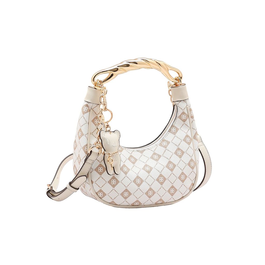 Bolsa Feminina Chenson Monograma Elemento Gráfico 3485392 Com design moderno e sofisticado, a bolsa Chenson 3485392 une estilo e funcionalidade em um acessório marcante. Seu corpo estruturado em formato meia-lua com estampa monograma contém uma identidade visual elegante e atemporal. O destaque vai para a alça principal com acabamento metálico torcido, que dá um toque de luxo instantâneo à peça. A alça transversal ajustável e removível garante versatilidade no uso - no ombro ou a tiracolo. Possui compartimento interno com divisórias práticas para o dia a dia. O chaveiro de ursinho com corrente dourada adiciona um toque delicado e cheio de personalidade. Ideal para quem busca uma bolsa compacta, funcional e com muito estilo. Dimensões Aproximadas: Altura: 20 cm Largura: 8 cm Comprimento: 17 cm Alça Principal: 14 cm Alça Transversal Removível: 53 cm Cuidados com o Produto: Guarde em um local seco e arejado, evitando locais úmidos. Evite colocar excesso de peso no produto para não forçar os zíperes e costuras. Proteja os objetos cortantes e/ou pontiagudos, evitando o contato direto com o produto. Evite altas temperaturas. Evite exposição prolongada à luz solar intensa, pois pode causar desbotamento do material. Cores claras podem manchar ao entrar em contato com objetos ou roupas de cores pigmentadas. Dicas de Limpeza: Para a limpeza, utilize apenas pano úmido com sabão neutro. Não mergulhe na água e não utilize componentes químicos, solventes ou alvejantes. Não deixe de molho e seque à sombra. Após a limpeza, use um pano seco para remover o excesso de umidade e preservar a textura do material.
