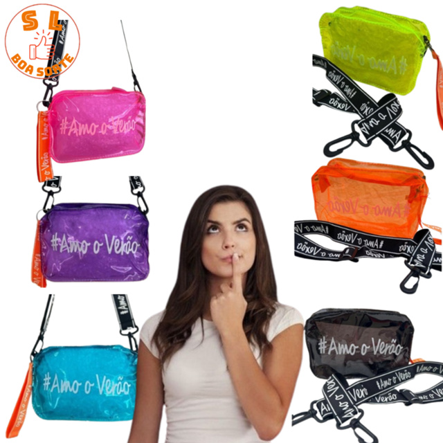 Bolsa Feminina com Alça Transversal Pochete Necessaire Transparente Praia Colorido Estilo Quadrada