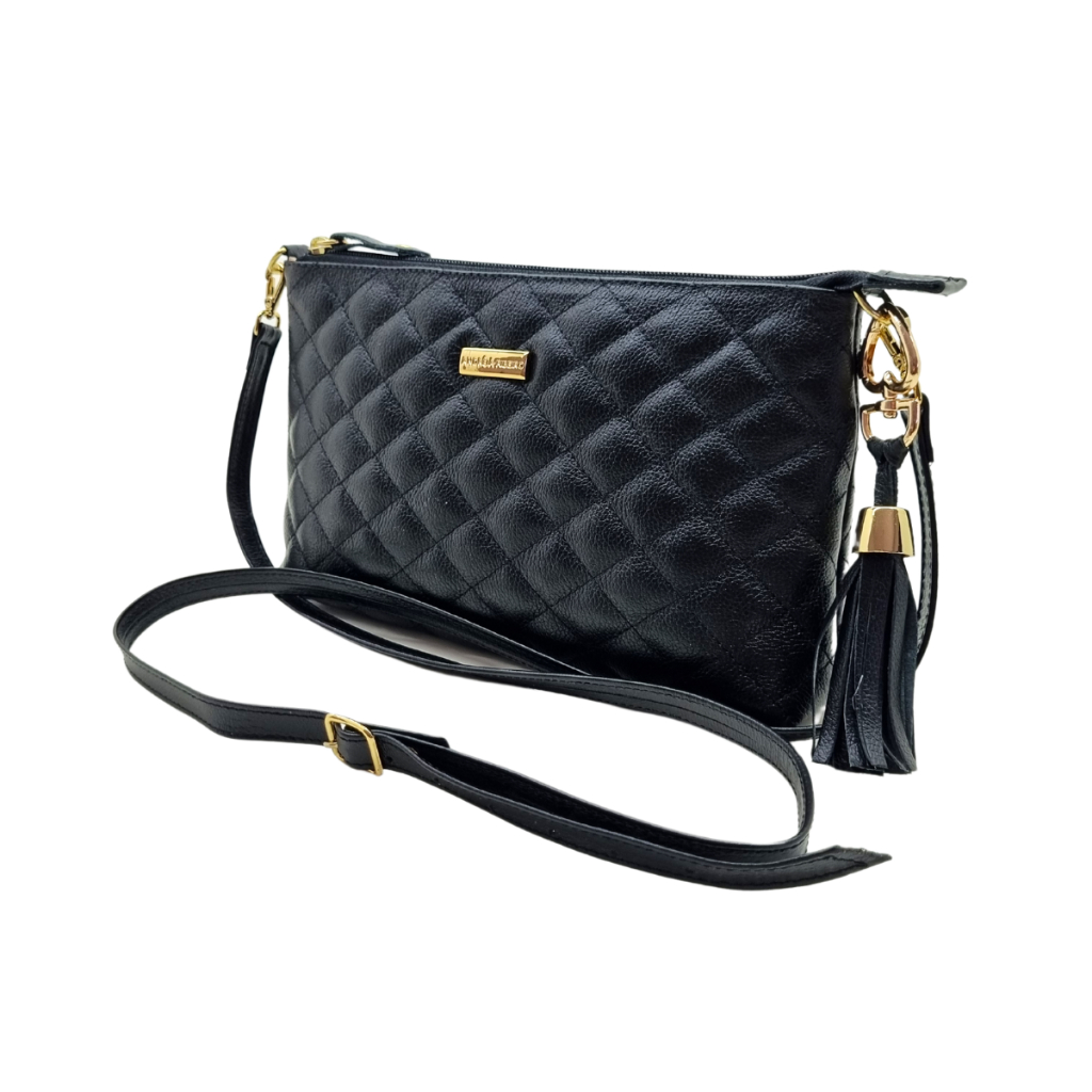Bolsa Feminina Transversal de Couro Legítimo – Andreia Ribeiro Transforme qualquer look com a sofisticação e qualidade de uma bolsa feita para mulheres que valorizam estilo e autenticidade. A bolsa transversal da marca Andreia Ribeiro é a união perfeita entre design elegante, funcionalidade e acabamento premium — ideal para quem busca praticidade sem abrir mão do charme. Confeccionada em couro legítimo com padrão xadrez clássico, ela traz um toque atemporal e refinado, combinando com produções desde as mais casuais até as mais formais. ✨Características do produto: - Couro 100% legítimo com textura xadrez - Alça ajustável em couro com 6 níveis (de 108cm a 120cm) - Forro interno em cetim com bolso com zíper - Estrutura reforçada com E.V.A entre o couro e o forro - Fechamento por zíper superior - Metais dourados com banho de ouro - Detalhe decorativo com penduricalho dourado - Plaquinha original da marca Andreia Ribeiro aplicada na frente 📏Dimensões aproximadas: - Comprimento: 23,5 cm - Altura: 14 cm - Profundidade: 14 cm - Largura lateral: 4 cm 👜 Uma peça versátil, sofisticada e com acabamento impecável — perfeita para te acompanhar do trabalho ao passeio, com estilo e personalidade.