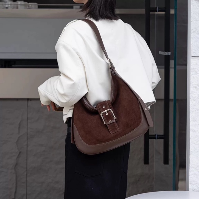 Bolsa feminina de alta qualidade, outono e inverno 2026, grande capacidade, camurça, couro nobuck, bolsa de ombro, axila