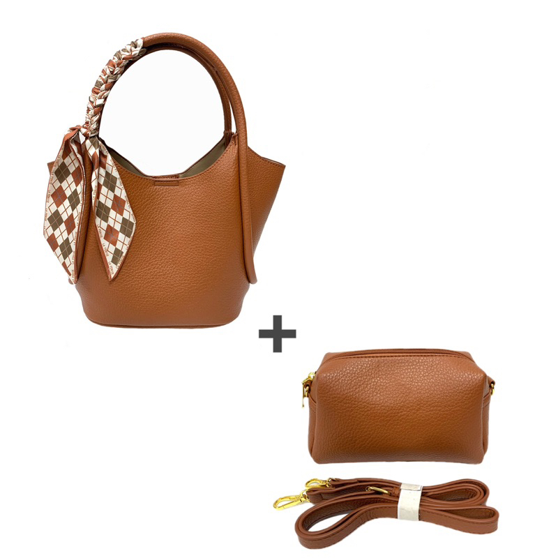 Bolsa Feminina De Mão Com Lenço + Bolsinha Básico Transversal Lançamento Kit 2 Bolsas