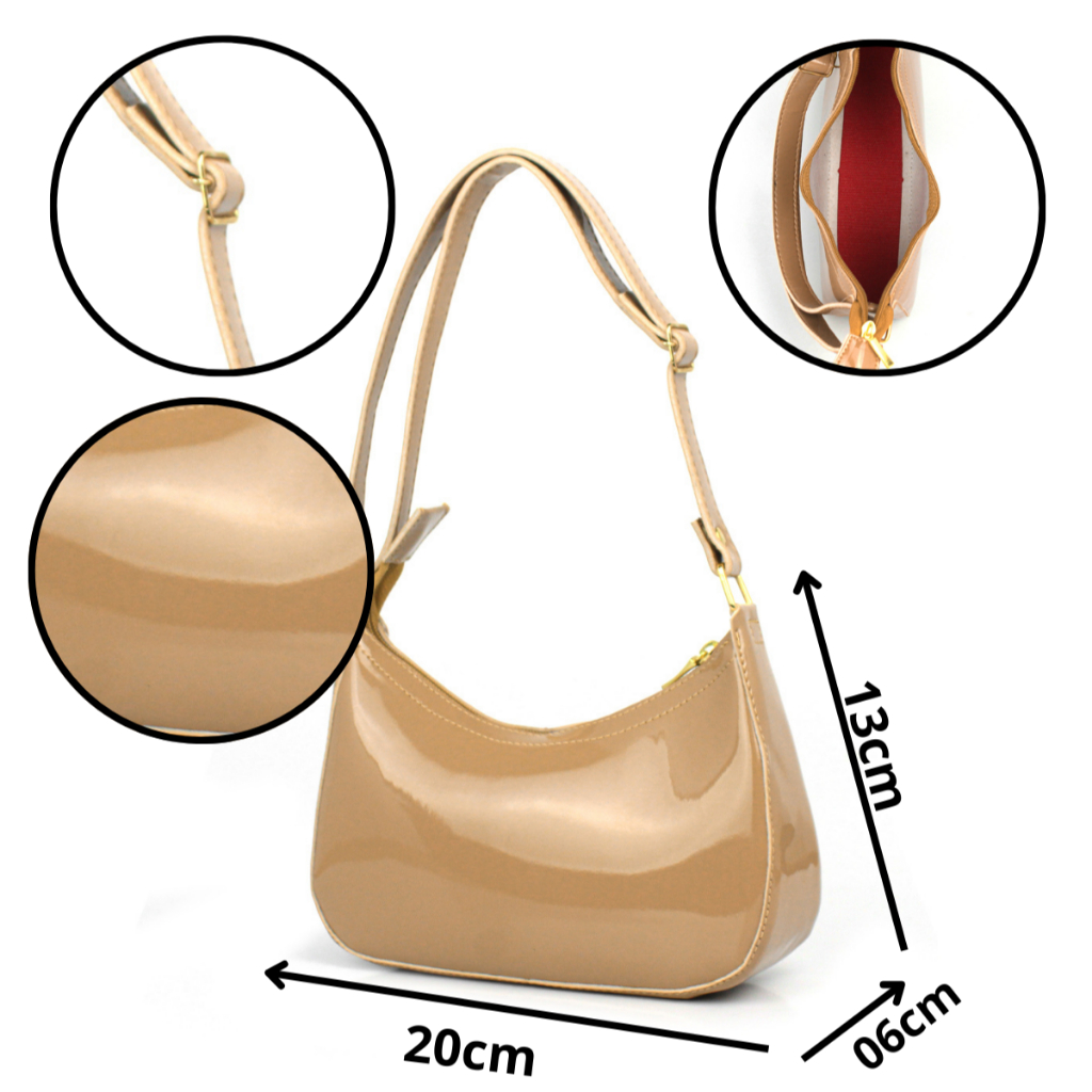 Bolsa Feminina De Ombro Ajustável Moda Meia Lua Luxo De Verniz Ali Freitas