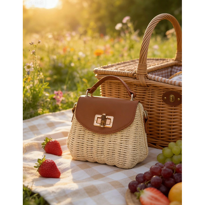 Bolsa Feminina Palha Sintética De Praia Moda Verão Top
