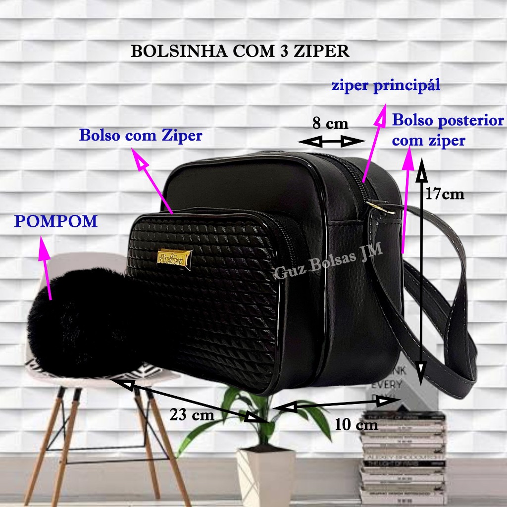 Bolsa Feminina Pequena Transversal Alça regulável 3 BOLSOS + POMPOM SUPER PROMOÇÃO