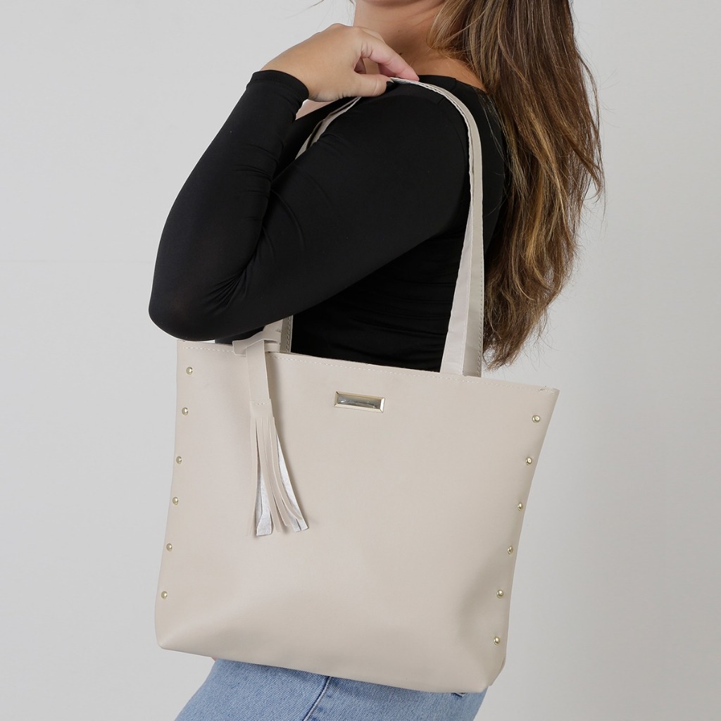 Bolsa Feminina Shopper Sacola Grande Com Detalhes Dourado