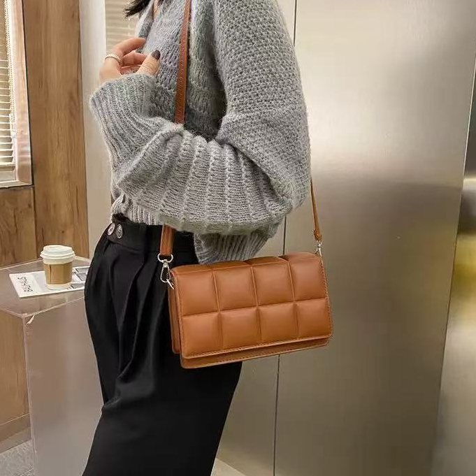 bolsa feminina transversal crossbody passeio couro sintético “quadrados” TAMANHO:20CM*13CM*7CM