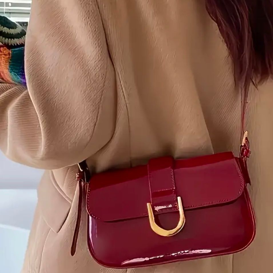Bolsa Feminina Verniz Alça Ajustavel Fivela Vintage Elegante De Ombro