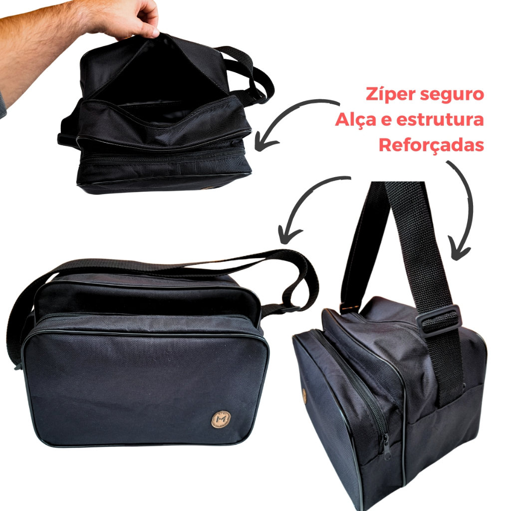 Acessório Essencial para Técnicos de Provedores FTTH! Se você trabalha com instalação de fibra óptica e manutenção em provedores de internet, sabe que a organização e o fácil acesso às ferramentas são essenciais para o seu trabalho. A Bolsa de Ferramentas FTTH Reforçada foi desenvolvida pensando em você, que busca praticidade, durabilidade e eficiência no dia a dia. PRINCIPAIS BENEFICIOS COMPACTA E FUNCIONAL : Tamanho ideal para carregar o essencial, sem sobrecarregar. Perfeita para quem precisa de mobilidade e organização. SUPER REFORÇADA : Fabricada com materiais de alta resistência, a bolsa é preparada para suportar o desgaste diário de trabalho em campo. COMPARTIMENTOS INFELIGENTES: Múltiplos bolsos e divisões internas, projetados para armazenar de forma segura as ferramentas específicas de instalação FTTH. CORREIA AJUSTÁVEL: Correia Ajustável e Confortável: Alça reforçada e ajustável, que permite carregar a bolsa por longos períodos sem desconforto. Imagine Seu Dia a Dia com a Bolsa FTTH: Imagine chegar a cada instalação com tudo no lugar, sem perder tempo procurando suas ferramentas. Com a Bolsa de Ferramentas FTTH, você pode se concentrar no que realmente importa: executar um trabalho de qualidade e aumentar sua produtividade. Diferenciais da Bolsa de Ferramentas FTTH: Material de Alta Qualidade: Produzida em tecido resistente “ não impermeável”, mas que que suporta baixas rajadas de chuva, garante proteção extra para suas ferramentas, independentemente das condições climáticas. Organização Profissional: Divisórias internas projetadas para acomodar desde chaves de precisão até ferramentas maiores, como alicates e medidores de fibra. Portabilidade: Tamanho pequeno e leve, sem comprometer o espaço de armazenamento. Perfeita para carregar em qualquer ambiente de trabalho. PERGUNTAS FREQUENTES : “Será que cabe tudo o que preciso? Embora seja compacta, a bolsa foi projetada para armazenar todas as ferramentas essenciais de instalação FTTH, sem desperdiçar espaço. “É realmente resistente?” Sim! O material é reforçado e resistente a rasgos, garantindo durabilidade mesmo nas condições mais exigentes de trabalho. “Vai me deixar confortável para longos períodos de uso?” Com a alça ajustável e acolchoada, a Bolsa FTTH proporciona conforto, mesmo durante longas jornadas de trabalho. Se você procura praticidade, durabilidade e organização no seu dia a dia como técnico de FTTH, a Bolsa de Ferramentas Pequena Reforçada é a escolha perfeita. Compacta, funcional e resistente, ela foi desenvolvida para suportar os desafios do campo e tornar seu trabalho mais eficiente. Garanta já a sua e eleve a qualidade do seu serviço! CARACTERISTICAS DO PRODUTO: Material: Nylon resistente preto Dimensões totais = 20 cm altura x 28 comprimento x 20cm largura Dimensões do compartimento principal = 20 cm altura x 28 cm comprimento x 14 cm largura Dimensões do comportamento = 16 cm altura x 28 cm comprimento x 6 cm largura Largura da alça de ombro: 4 cm largura Comprimento da alça de ombro: 150cm Peso: 650 gramas Principais Aplicações: Profissionais de Telecomunicações e Rede, Eletricistas, Encanadores, Profissionais de HVAC (Técnicos de aquecimento, ventilação e ar-condicionado), Construtores e Empreiteiros, Técnicos de Segurança e Alarme, Manutenção Industrial, Profissionais de Manutenção de Veículos, Manutenção Residencial e Doméstica, Profissionais de Serviço de Campo.