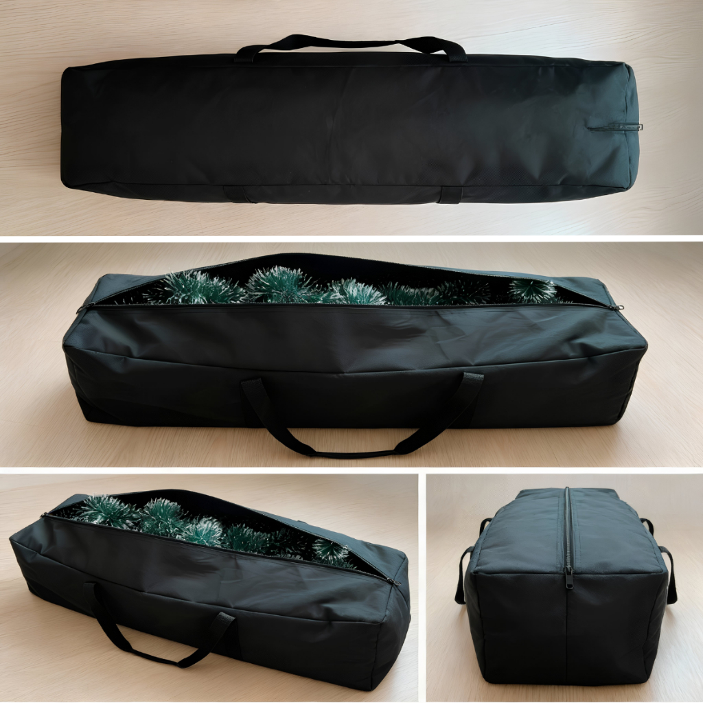 *Compatível com árvores que possuam hastes de até 115 cm (1,15 m). Hastes maiores que isso não cabem na bolsa. Acomoda bem diversos modelos de árvores de natal de 210cm* Bolsa Grande Bag para Guardar Árvore de Natal – Noël Collection Organização, proteção e muito mais durabilidade Após o Natal, guardar corretamente sua árvore faz toda a diferença. A Bolsa Bag Noël Collection foi desenvolvida para substituir sacos de lixo e caixas de papelão, que não protegem e acabam reduzindo a vida útil da árvore, dos enfeites e do pisca-pisca. PRINCIPAIS BENEFÍCIOS: - Substitui saco de lixo e caixa de papelão - Protege contra poeira, umidade e deformação - Evita galhos amassados e enfeites danificados - Guarda tudo em um único lugar - Aumenta significativamente a durabilidade da decoração natalina O QUE PODE SER GUARDADO NA BOLSA: 1. Árvore de Natal desmontada 2. Pisca-pisca 3. Enfeites e acessórios natalinos DIMENSÕES: *** PODE OCORRER VARIAÇÃO DE 3CM PARA MAIS OU PARA MENOS *** - Comprimento: 120 cm - Largura: 29 cm - Altura: 24 cm *Compatível com árvores que possuam hastes de até 115 cm (1,15 m). Hastes maiores que isso não cabem na bolsa.* - Qualidade e Resistência - Alças reforçadas para transporte seguro - Zíper reforçado nº 8, grosso e resistente - Costuras e acabamento reforçados - Cor preta: discreta, elegante e fácil de armazenar CARACTERÍSTICAS DO PRODUTO Marca: Noël Collection Modelo: Bolsa Bag Cor: Preta PERGUNTAS FREQUENTES 1- Serve para qualquer árvore de Natal? *Serve para árvores desmontadas que tenham hastes de até 115 cm.* 2- Posso guardar enfeites e pisca-pisca junto? *Sim. A bolsa comporta árvore, enfeites e luzes no mesmo espaço.* 3- Ela protege melhor que caixa ou saco de lixo? *Sim. A bolsa foi feita exatamente para proteger, organizar e aumentar a durabilidade da decoração.* 4- O zíper e a alça são resistentes? *Sim. Possui zíper nº 8 reforçado e alças reforçadas.*