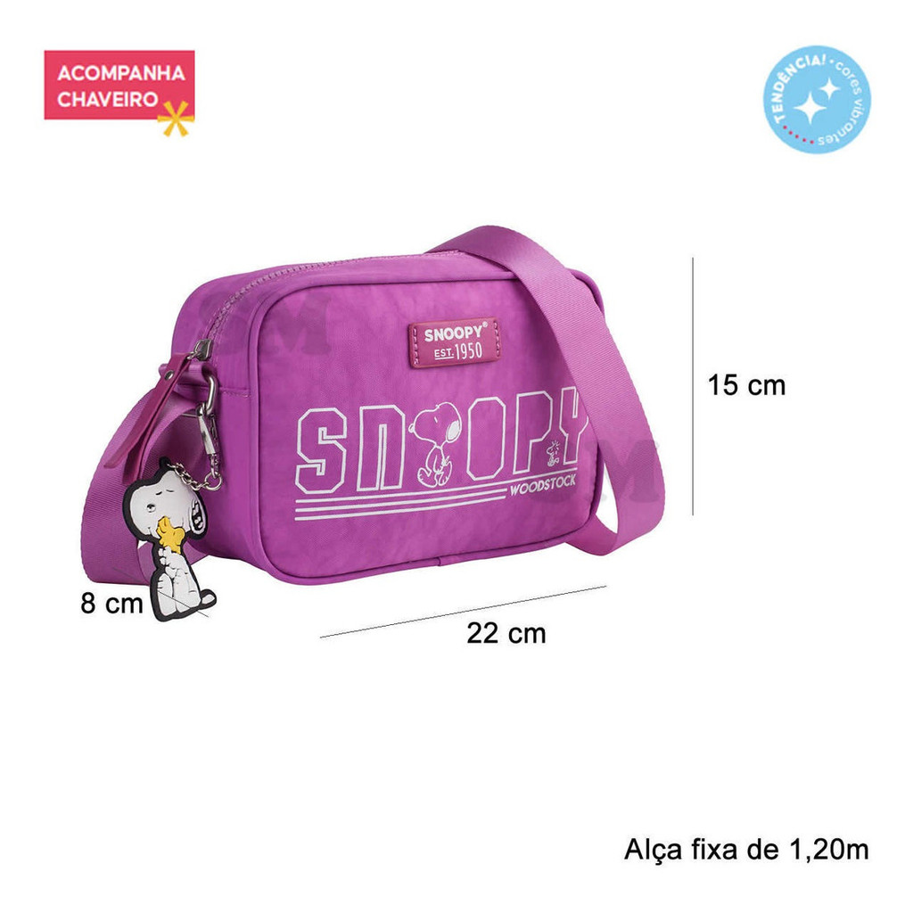 Bolsa Jovem Feminina Nylon Snoopy Lilás Desenho Do Tecido Liso
