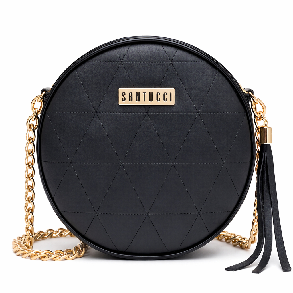 Bolsa Santucci Redonda com alça de corrente - Nossa bolsa Santucci, traz um toque mais despojado com lindo bordado na frente, ideal para festas e eventos casuais. - Confeccionada em couro sintético, macio, resistente, impermeável e com a melhor qualidade do mercado. - Ficha técnica do produto: Altura: 18cm Largura: 18cm Profundidade: 6cm Alça: 120cm Fechamento: Zíper Material: Altar (sintético) - Somos fabricantes e trabalhamos com todos os modelos a pronta entrega, para garantir o envio e recebimento mais rápido do mercado. - Estamos à disposição para tirar todas as dúvidas.