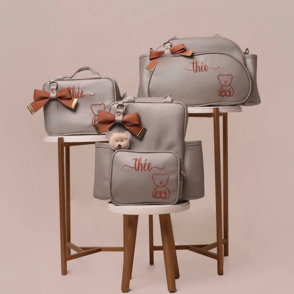 Bolsa Maternidade Menina Menino Luxo 3 Peças Térmica Coleção Urso