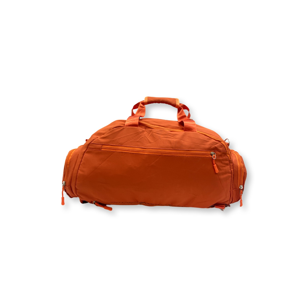 1 Bolso Frontal 1 Bolso nas costas 1 Bolso lateral com zíper 1 Bolso lateral para Tênis ou roupas sujas Acompanha 1 alça regulável transversal e 2 alças para uso como mochila MEDIDAS: - Altura: 25cm - Comprimento base: 45cm - Largura base: 25cm