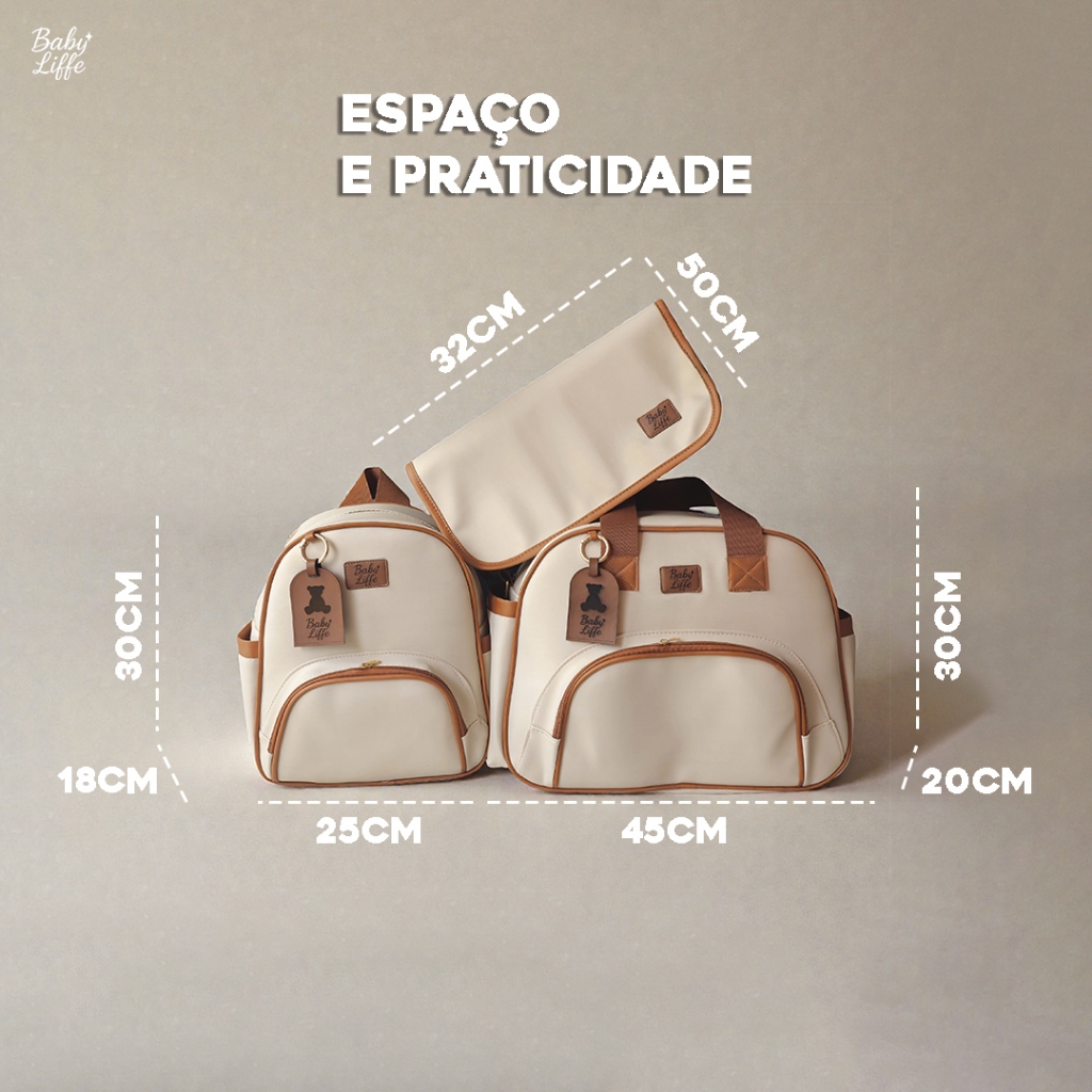 ✨ Kit Bolsa Maternidade Baby Liffe – Completo e Impermeável ✨ O Kit Baby Liffe é ideal para mamães que buscam praticidade, organização e elegância no dia a dia. Produzido com material premium e impermeável, oferece durabilidade e segurança para transportar tudo o que o bebê precisa. 📦 Conteúdo do kit: ✔ Mochila maternidade ✔ Bolsa maternidade grande ✔ Trocador portátil 📏 Medidas: 🔹 Mochila • Altura: 30 cm • Largura: 18 cm • Comprimento: 25 cm 🔹 Bolsa • Altura: 30 cm • Comprimento: 42 cm • Largura: 20 cm 🔹 Trocador portátil • Aberto: 50 x 32 cm ⭐ Diferenciais: ✔ Material impermeável ✔ Forro térmico ✔ Ferragens inoxidáveis ✔ Acabamento premium ✔ Excelente espaço interno e organização Ideal para passeios, viagens e rotina diária. Ótima opção para presente 🎁 💙 Baby Liffe – Qualidade e carinho em cada detalhe.