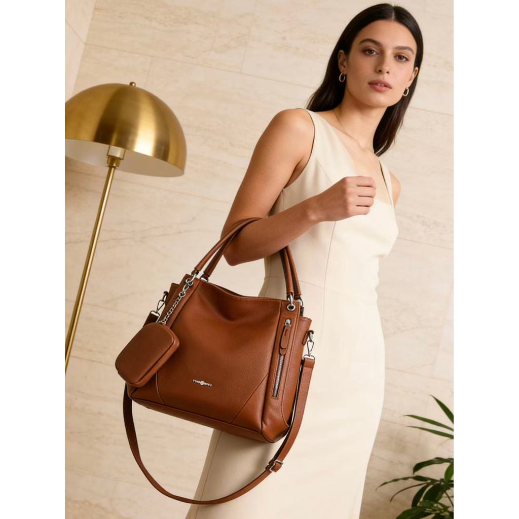 Bolsa Mochila Feminina Grande De Ombro Com Alça Transversal De Couro PU TM9034 AMY