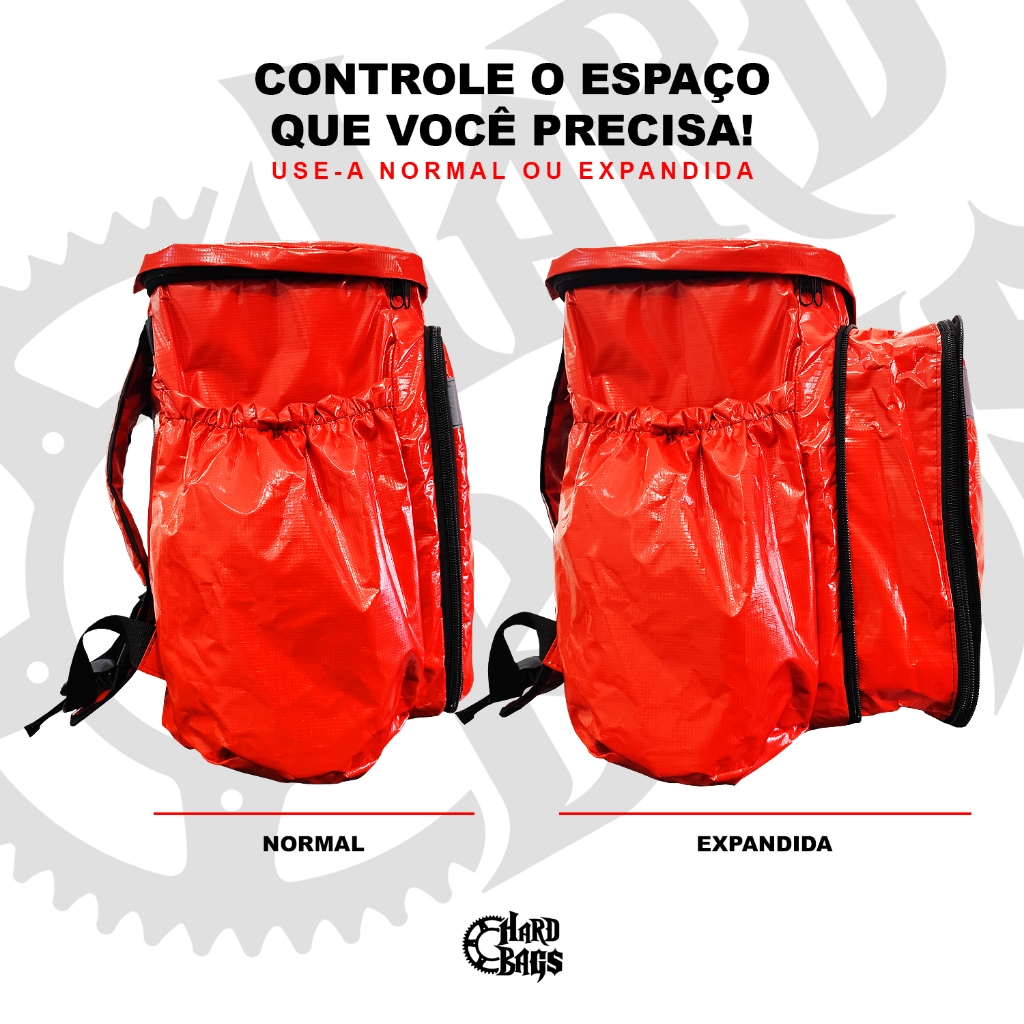 MOCHILA EXPANSIVA TERMICA IMPERMEÁVEL - VERMELHA Cores disponíveis: Vermelha Capacidade: 80 litros Material interno: Forro laminado Material externo: Lona PVC impermeável e super resistente Com dimensões de 43cm larg x 48cm alt x 29cm prof (39cm c/ expansor) e capacidade de 90 litros, essa isobag é produzida com materiais de alta qualidade, incluindo tecido nylon 600 e forro laminado, garantindo a preservação da temperatura interna. Seu design expansível permite acomodar pizzas de diferentes tamanhos, proporcionando versatilidade. Um dos pontos que nos destaca da concorrência, os zíperes não enroscam, os cursores são de alumínio, as alças são acolchoadas, a bolsa possui quatro pezinhos na parte de baixo, para não haver atrito com o chão, evitando desgastes e aumentando a vida útil da mochila, na parte da frente há uma faixa refletiva para maior visibilidade, e segurança do entregado
