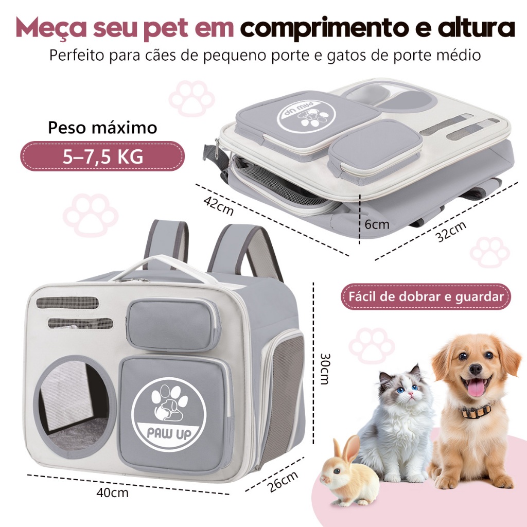 Leve seu pet com conforto e elegância em qualquer lugar! Perfeita para passeios, viagens ou visitas ao veterinário, a mochila pet multifuncional foi projetada para oferecer máximo bem-estar e segurança ao seu bichinho, sem abrir mão do estilo. ✨ Principais Benefícios 🐾 Visão Panorâmica e Redução da Ansiedade Com janela transparente, seu pet pode observar o ambiente ao redor, sentindo-se mais tranquilo e curioso durante o trajeto. 💨 Alta Ventilação e Conforto Térmico As aberturas laterais com malha respirável garantem circulação de ar constante, mantendo o interior sempre fresco e agradável. 🛏️ Ambiente Interno Confortável Possui acolchoado macio e removível, ideal para gatos e cães de pequeno porte descansarem com conforto total. 🎒 Design 2 em 1 — Mochila e Bolsa de Mão Use como mochila ergonômica com alças ajustáveis ou bolsa de transporte, conforme sua necessidade. Leve, prática e versátil para diferentes ocasiões. 💎 Visual Moderno e Sofisticado Com acabamento elegante e cores modernas (cinza, rosa e azul), a mochila combina perfeitamente com o seu estilo de vida. 🧳 Fácil de Transportar e Armazenar Seu design compacto e leve (1,2 kg) facilita o transporte e o armazenamento, perfeita tanto para viagens curtas quanto longas. 📏 Especificações Técnicas Material: Tecido Oxford de alta qualidade Dimensões: 40 x 30 x 26 cm Capacidade: Ideal para pets de até 8 kg Peso: 1,2 kg Cores disponíveis: Cinza | Rosa | Azul | Verde 📌 Observações Importantes Certifique-se de que o peso e o tamanho do pet sejam compatíveis com as dimensões da mochila. As cores podem variar levemente devido à iluminação ou configurações de tela. Produto desenvolvido para garantir segurança, conforto e praticidade em todos os momentos. 💖 Mochila Pet Transparente Multifunções — Porque seu amigo merece viajar com conforto e estilo!