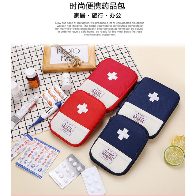 Kit de primeiros socorros/ emergência portátil externo para remédios kit de emergência Dimensões: 10,5x15cm( tamanho P) e 18x13cm (tamanho G) Cor: Vermelho e Azul
