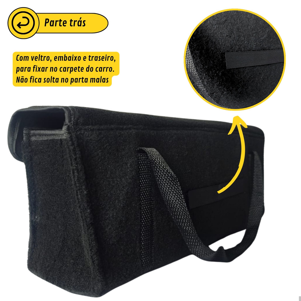 Tá cansado de bagunça dentro do seu carro? Essa bolsa organizadora vai te ajudar a organizar os objetos dentro do veículo. Pode ser usada para organizar as ferramentas, macaco, chave de roda, ou pode também organizar outros objetos como guarda-chuvas ou produtos de uso cotidiano que ficam espalhados no carro. Você pode personalizar a sua bolsa conforme a montadora do seu carro. SELECIONE A MONTADORA DO SEU CARRO NAS VARIAÇÕES DO ANÚNCIO. TEMOS TODOS MODELOS A PRONTA ENTREGA. PRÁTICA DURÁVEL RESISTENTE Características do Produto: • Material Durável: Feita com Carpete Automotivo de alta qualidade, resistentes a desgaste e rasgos. • Design Compacto: Fácil de armazenar no porta-malas sem ocupar muito espaço. • Portabilidade: Alças robustas para facilitar o transporte e manuseio. • Fecho Seguro: Por Velcro, garantem que tudo fique no lugar, mesmo em movimento. Benefícios: • Organização: Mantém suas ferramentas organizadas e acessíveis. • Praticidade: Ideal para emergências ou manutenções rápidas no veículo. • Versatilidade: Pode ser utilizada não apenas no carro, mas também em casa, no trabalho ou em qualquer outro lugar. Dimensões: • Comprimento: 42 cm • Largura: 11 cm • Altura: 18 cm Obs. Cabe Macaco, Chave de Roda Original, Triângulo de Segurança e muito mais!!!! Dica: Perfeita para motoristas, mecânicos ou qualquer pessoa que deseja manter suas ferramentas sempre organizadas e prontas para o uso.
