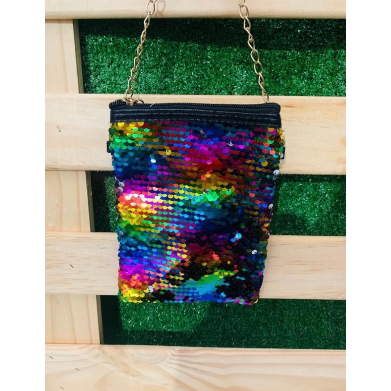 Bolsa Paetês Transversal Alça Dourada Fechamento Com Ziper 7006