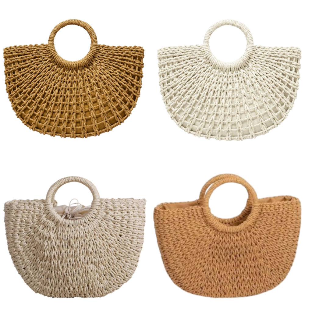 Bolsa Palha Artesanal Meia Lua Grande - Moda Casual Praia De Mão Verão