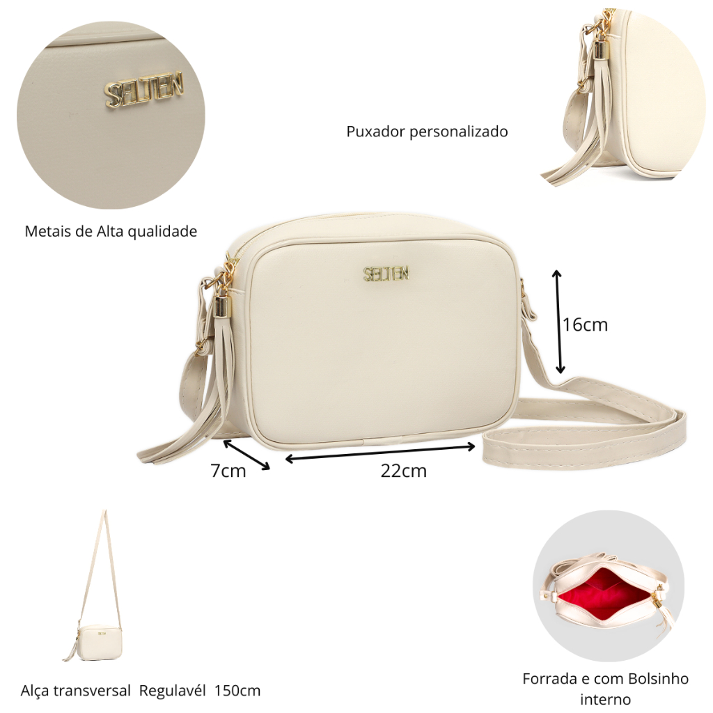 Bolsa Pequena De Lado Creme E Transversal Clutch Lançamento Selten