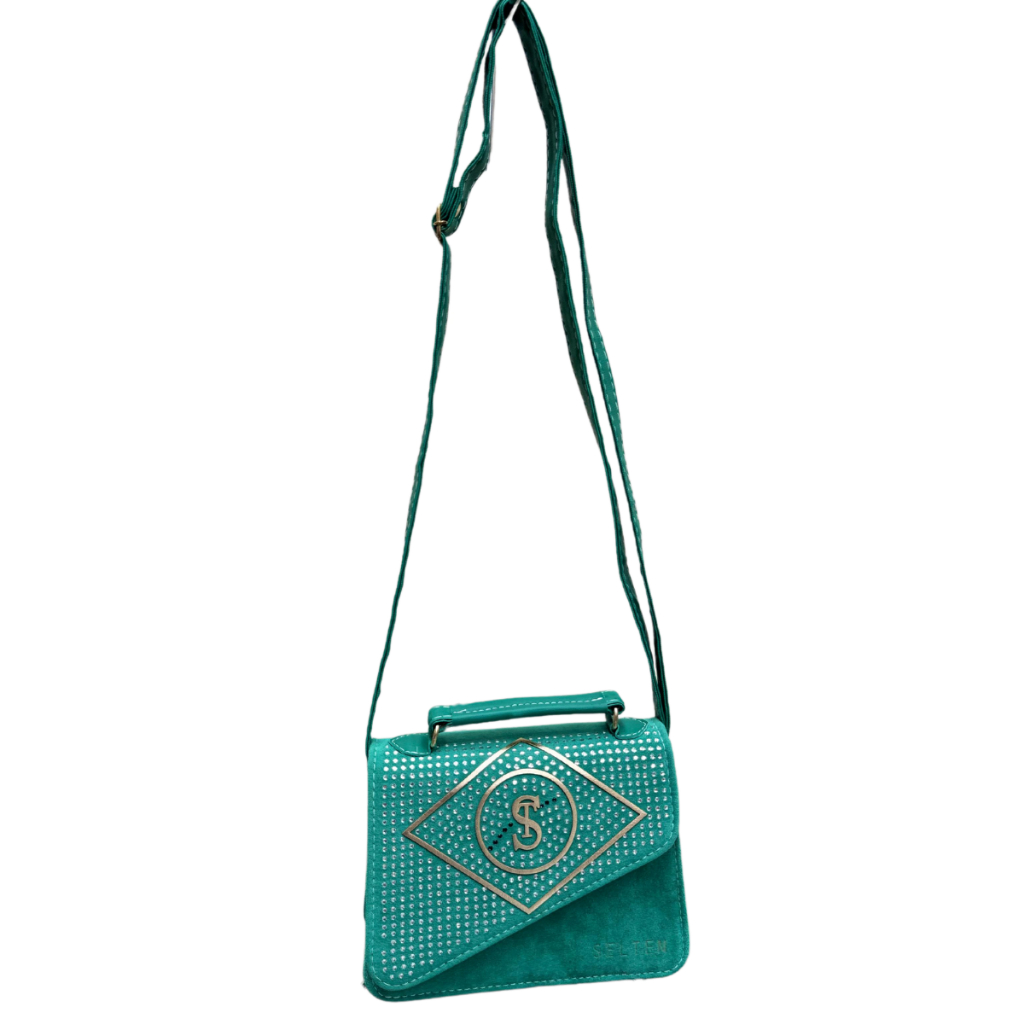Bolsa feminina Selten em tamanho compacto, ideal para quem busca sofisticação e praticidade no dia a dia. Confeccionada em material com acabamento aveludado, apresenta design moderno na cor verde esmeralda, enriquecido com aplicação de strass que confere brilho e elegância ao acessório. A peça possui detalhe metálico dourado na tampa com o monograma da marca, agregando requinte ao visual. Seu interior é forrado com tecido acetinado e personalizado Selten, proporcionando maior durabilidade e acabamento refinado. Conta com fechamento por botão de pressão, garantindo segurança e praticidade no uso. Dimensões aproximadas: Altura: 14 cm Largura: 17 cm Profundidade: 6 cm Versátil, pode ser usada tanto como bolsa de mão pelo suporte superior estruturado quanto como bolsa transversal, graças à alça longa ajustável. Um modelo elegante e funcional, perfeito para compor produções sofisticadas em eventos ou no cotidiano. Garantia de 30 dias Todas as fotos são reais.