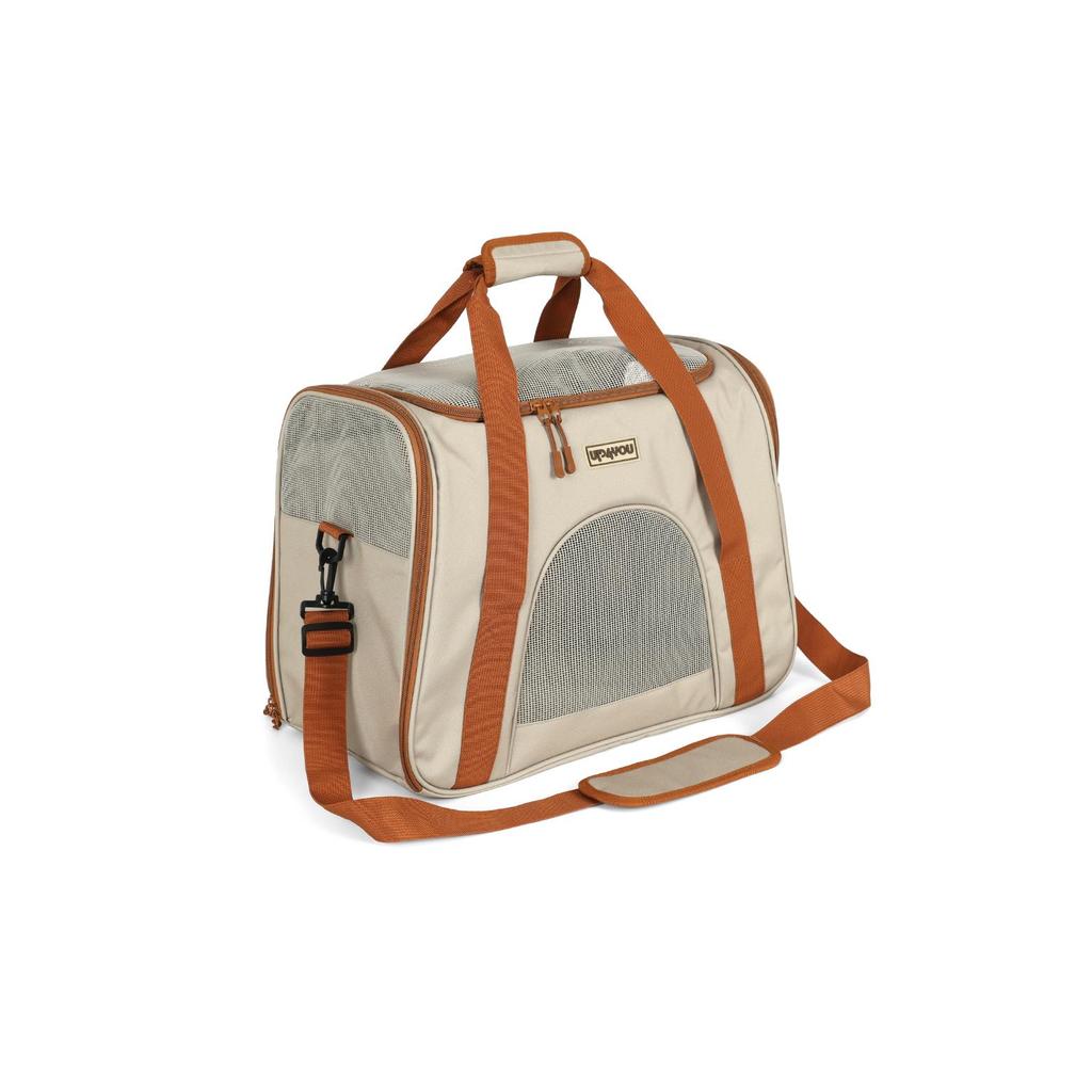 A sacola de Transporte Pet para viagens modelo PE24001UP faz parte da nova Linha Pet da Up4You, desenvolvida para oferecer conforto, segurança e praticidade em viagens e passeios. Ideal para cães e gatos de porte pequeno a médio, suporta animais de até 7 kg, garantindo bem-estar e comodidade durante o transporte. Confeccionada em poliéster resistente, conta com tela em rede para ventilação e visibilidade, guia interna acoplada para maior segurança do pet, alças de ombro e de mão que permitem diferentes formas de transporte e logo emborrachado da marca, que confere um acabamento moderno e elegante. O modelo é leve, funcional e fácil de limpar, ideal para o dia a dia. Possui dimensões de 32 x 25 x 45 cm, sendo classificada como bolsa pet média, indicada para cães e gatos de pequeno e médio porte, como Poodle Toy, Shih Tzu, Yorkshire, Spitz Alemão, Lhasa Apso, Pinscher, Gato Persa e Siamês, entre outros de peso equivalente. Dicas de uso: recomendada para passeios a pé, transporte em carro e situações em que o animal precisa estar sob controle. **Este modelo é aceito a bordo, porém não é indicado para animais de grande porte.** Dicas de limpeza: utilizar apenas água e sabão neutro, lavando à mão com pano ou esponja macia de forma suave. Evite produtos químicos, materiais abrasivos ou contato com objetos cortantes para preservar o tecido e os detalhes da bolsa.