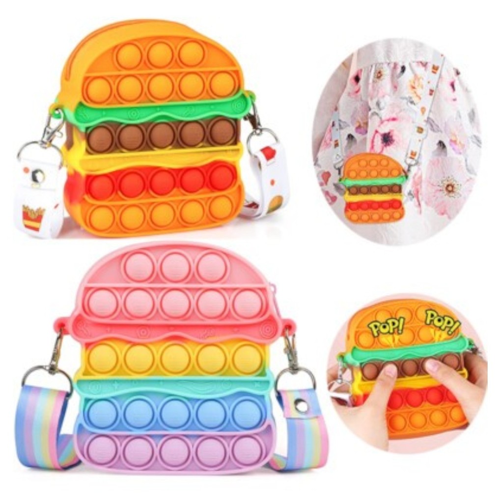 Bolsa Pop It Mochila Lancheira Infantil De Silicone Hamburguer Bolsinha Sensorial Anti Stress Lanche