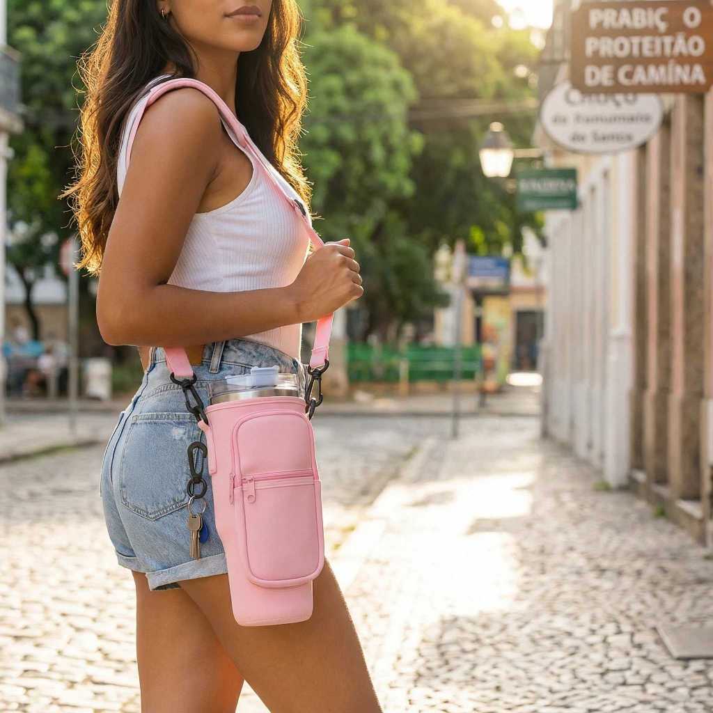 Bolsa Porta-garrafas De Água Compatível Com Copo 40oz 1,2 Litro Para Celular Chaveiro Com Alça De Ombro Ajustável