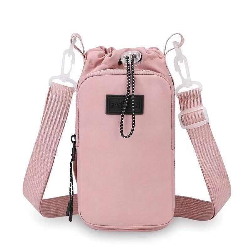 Bolsa portátil de garrafa de água em nylon, com saco para celular e fechamento por cordão de puxar