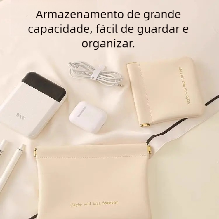 Bolsa Portátil para Fones e Moedas - Nova PU Mini com Fechamento Simples